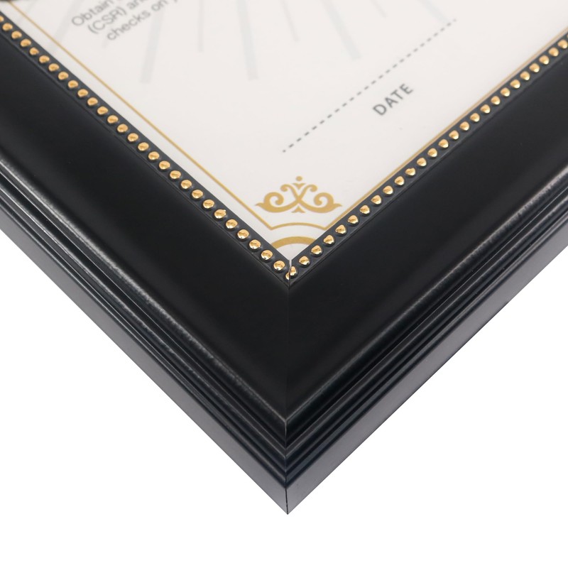 GraduationMall A4 Diploma Picture Frame Certificate Frame Document Frame Plexiglass Certificate Frame Black with Gold Beads Wall & Table Frame