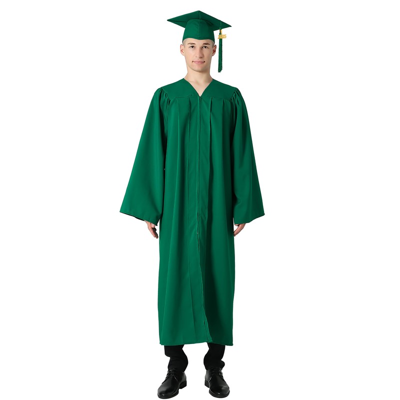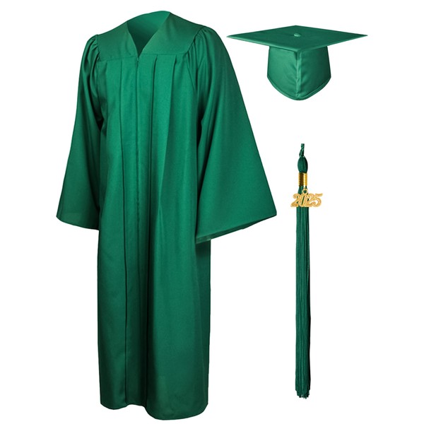 GraduationMall Matte Graduation Gown Cap Tassel Set 2025 for High School and Bachelor Emerald Green 51 Plus(5'6"-5'8")