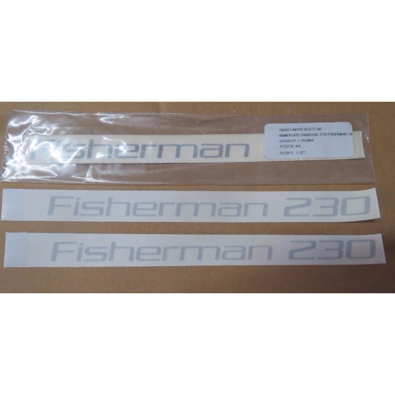 GRADY WHITE FISHERMAN 230 NAMEPLATE CHARCOAL STD DECAL SET 8-7/8" x 1/2 #10-0849