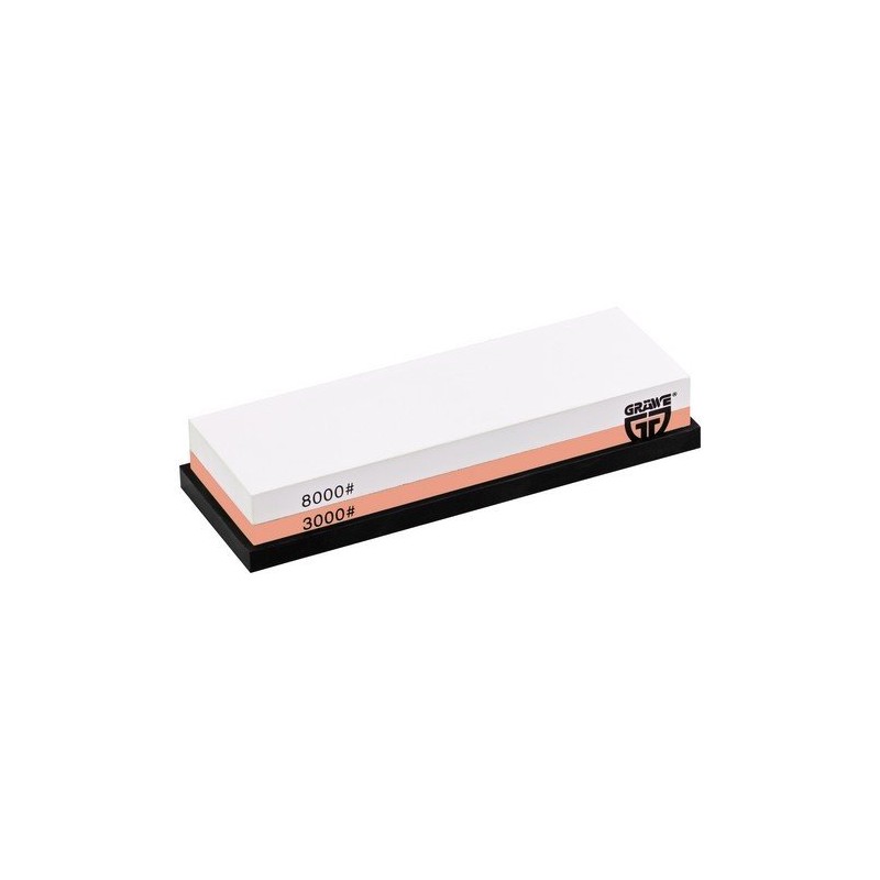- Whetstone with 3000 / 8000 grit. Size: 18 cm x 6 cm x 2.6 cm; weight 485 g