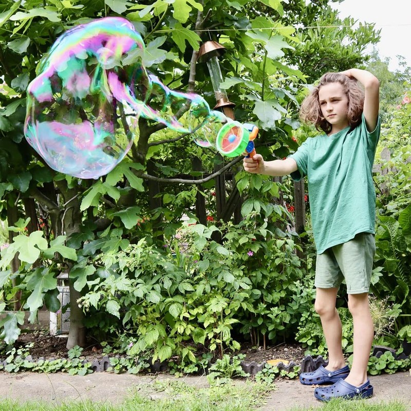 - Bubble Blaster - This turbo bubble blaster gun set by Grafix is a perfect garden/outdoor fun toy for kids to make giant bubbles. A fun-filled party toy for get-togethers and family fun! The bubble blowing gun comes with a bubble blower garden liquid solution