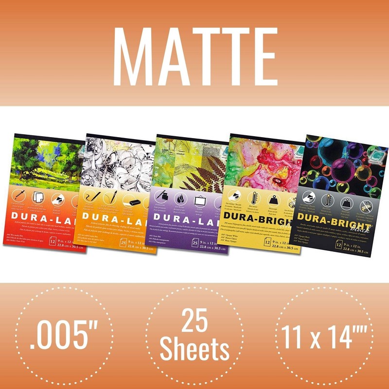 - 25 SHEET PAD: This pad contains 25 sheets of Dura-Lar Matte Film. Each sheet is 11 x 14 “ and 0.005” thick. Made in the USA.