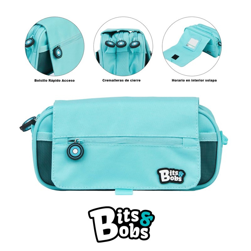 Grafoplas 37543231. Bits & Bobs Pencil Case with 3 Zips, Pastel Blue, 23 x 10 cm