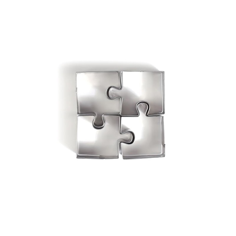 - Set of 4 small puzzle cookie cutters made of stainless steel, 3.5 x 3.5 cm, for modelling and cooking. With these pretty cookie cutters, you can cut out modelling clay or sugar paste with ease. Start by spreading your dough with a roll or dough machine and then place your cookie cutter puzzle on the dough. Press firmly and then take out your cookie cutter - your shape is cut! The stainless steel cookie cutter is a valuable tool for all dough makers