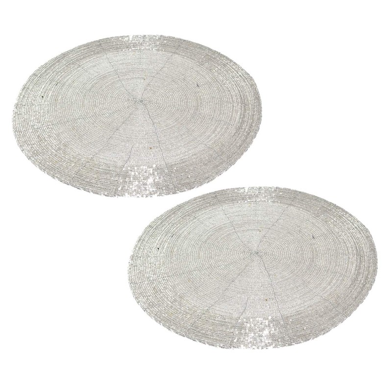 GRAINEX ENGINEER 2 Pieces Heat Resistant Trivets Coaster With Glass Beads For Kitchen Pans, Hot Pot Holders Mats For Table, Kitchen Decor For Counter, Home Essentials(Silver)
