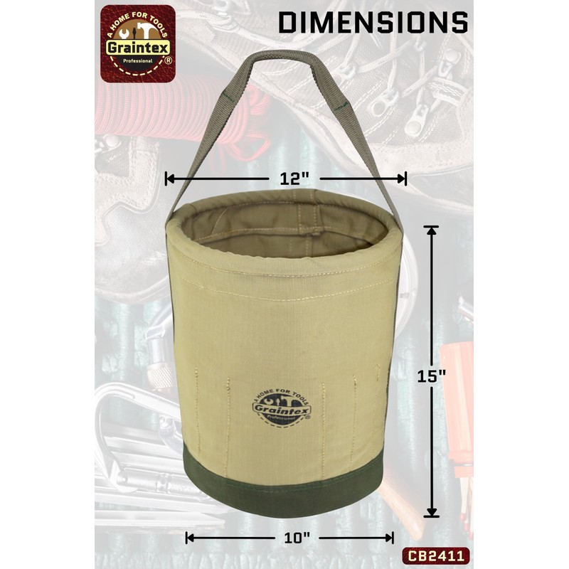 Graintex CB2411 Utility Tapered Canvas Bucket 12"X10"X15"
