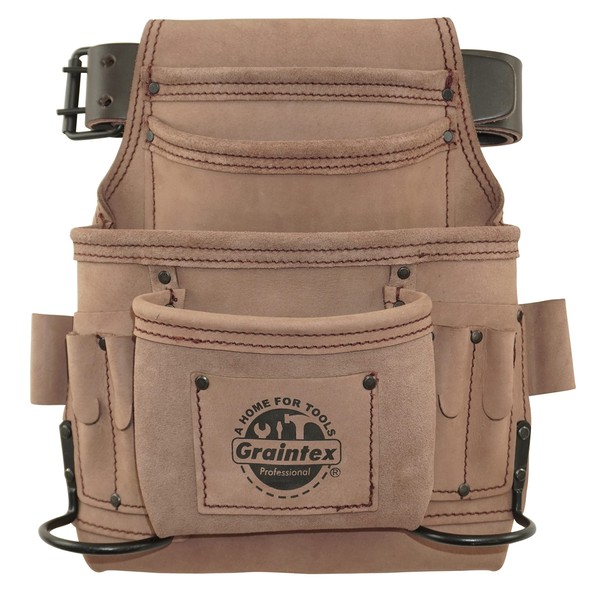 Graintex ST2140 10 Pocket Nail & Tool Pouch Top Grain Leather with 2” Leather Belt for Framers, Constructors, Electricians, Plumbers, Handyman