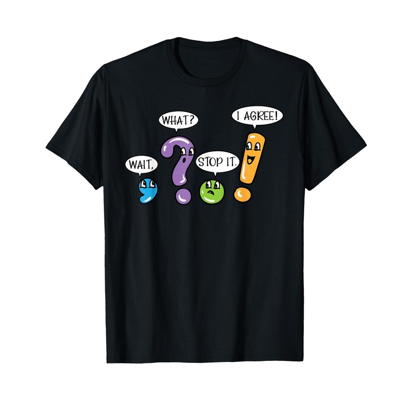 - Embrace the humor of grammar with these funny punctuation marks design ideal for back to school, first day of school, and Teacher's Day. Great as a teacher appreciation gift for English teachers, teaching assistants, grammar police, and students.