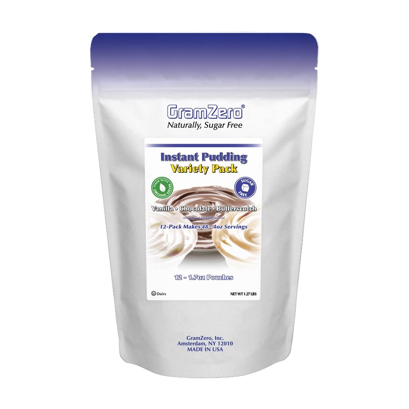 GramZero Variety (Vanilla, Chocolate, Butterscotch) Sugar Free Pudding Mix 12-Pack, Great For Nutrition Club Meal Replacement Shakes, Low Calorie Dessert, Stevia Sweetened