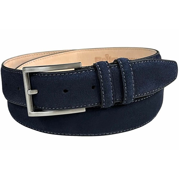 Granada Men's 100% Suede Nubuck Leather Dress Belt 1-3/8" Wide (Navy, 34)