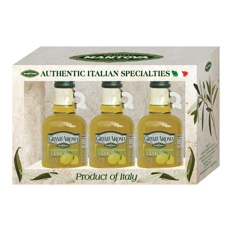 Mantova Grand’Aroma Lemon Flavored Extra Virgin Olive Oil, made in Italy, cold-pressed, 100% natural, heart-healthy cooking oil perfect for salad dressing, pasta, garlic bread, meats, or pan frying, 8.5 oz (Pack of 3)