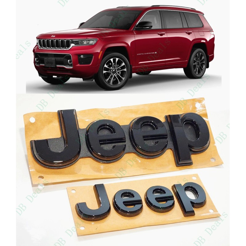 Grand Cherokee 2PCS Gloss Black Gray Front Rear Jeep Emblems Fit 2021+ Jeep Grand Cherokee L WL