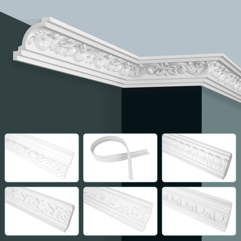 Grand Decor Stucco Moulding Ceiling Baroque Style, PU Hard Foam & Flexible - 2 m Ceiling Mouldings Patterned Decorative Construction Frame Strips (2 Metres C741 flexi)