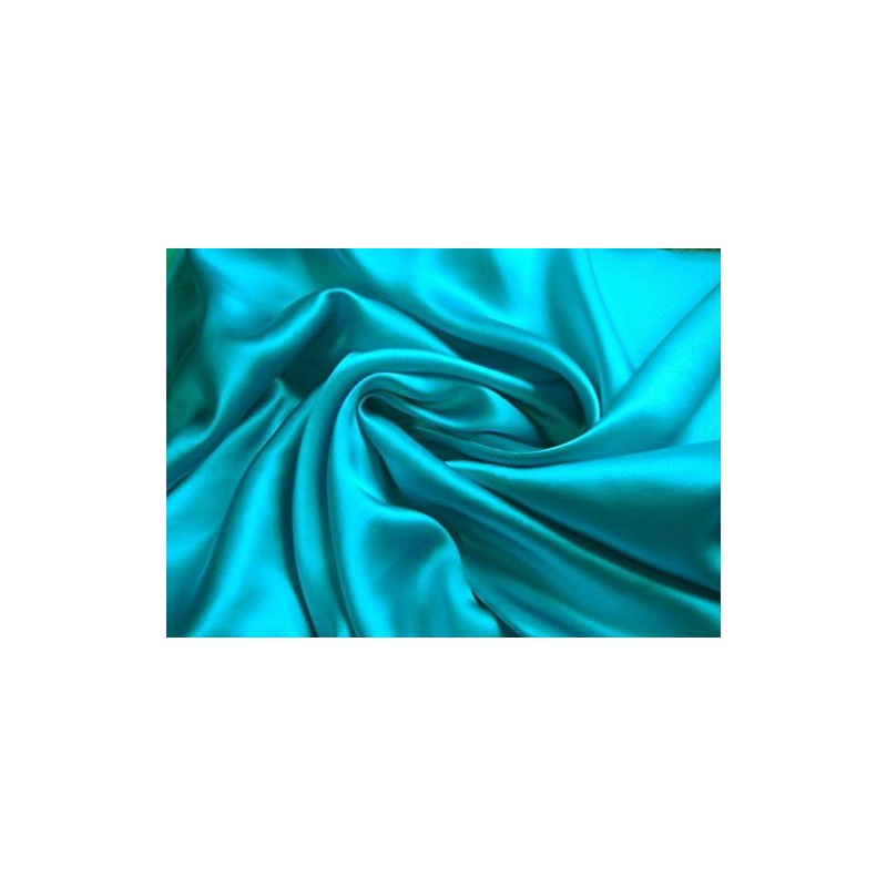 Grand Linen 4-Piece King Size, Solid Turquoise Blue Soft Silky Charmeuse Satin Sheet Set - Flat, Fitted and Pillow Cases. Deep Pockets