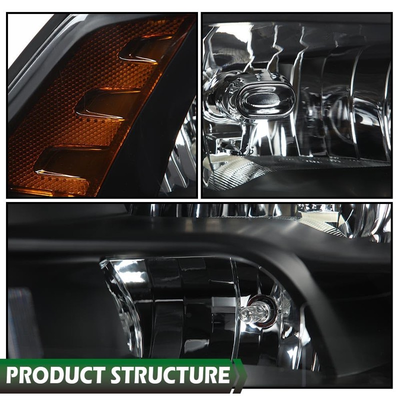 GRAND ORANGE Headlights Assembly Compatible with 2009-2012 Dodge Ram 1500 2500 3500 Clear lens Black Housing Amber Reflector CH2519135 CH2518135 CH2503217