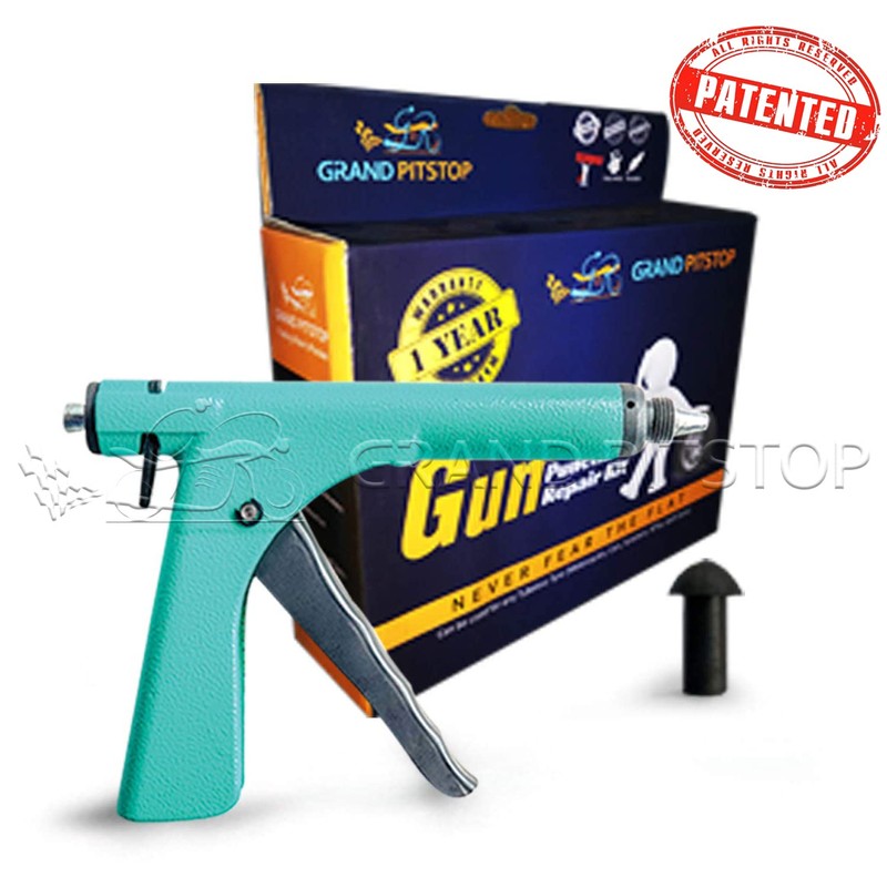 GRAND PITSTOP Tubeless Tire Gun Puncture Repair Kit with Mushroom Plug for Tyre Punctures and Flats on Cars, Motorcycles, ATV, Trucks & Tractors (Gun Puncture kit 15 Plugs, Green)