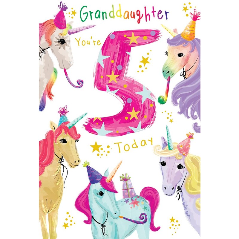 Granddaughter 5th Birthday Card Age 5 Unicorns 9" x 6" Lovely Verse