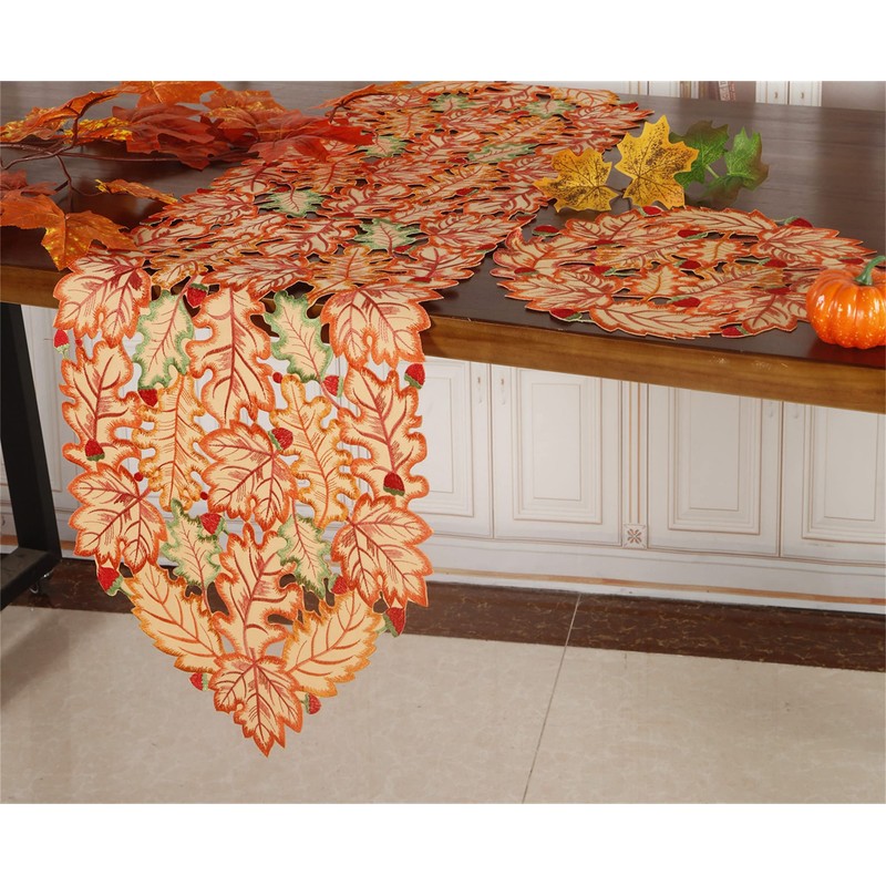 - Camino de mesa y manteles individuales: camino de mesa de otoño y manteles individuales hechos de hojas de arce, bordados y llamativos calados, hojas de arce multicolores muy ricas son bellamente aplicadas. Crea un ambiente de otoño perfecto para tu mesa.