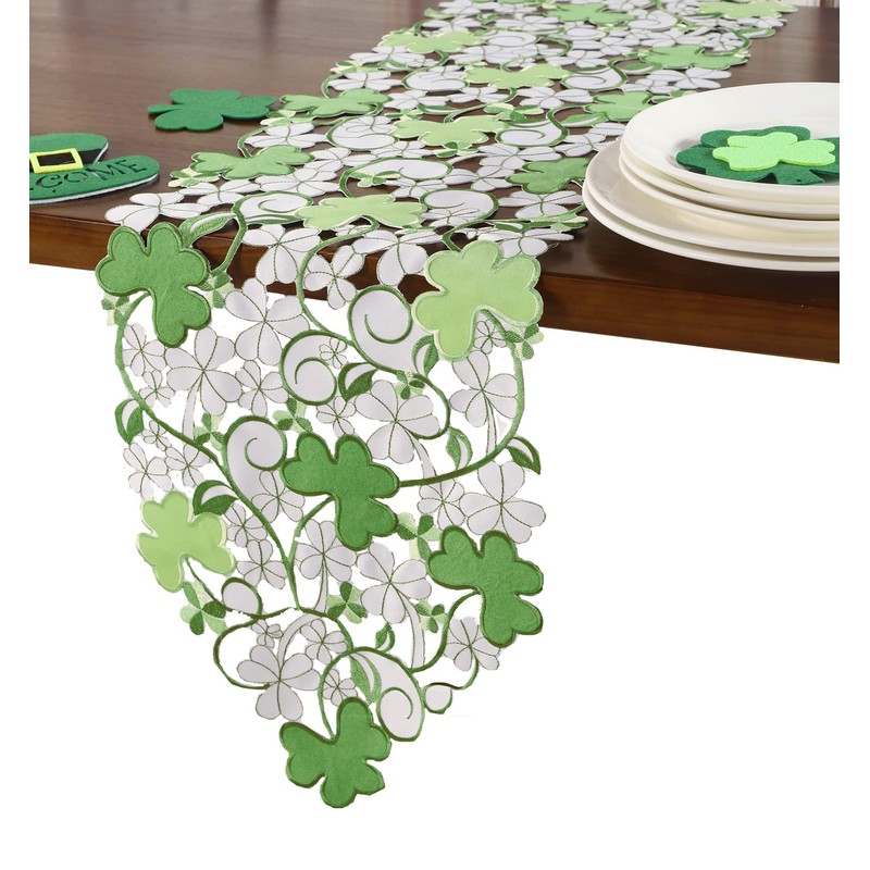 GRANDDECO St. Patrick's Day Spring Table Runner,Applique Embroidered Cutwork Clover Dresser Scarf, Home Kitchen Dining Tabletop Decoration,Runner 13"×83", Green