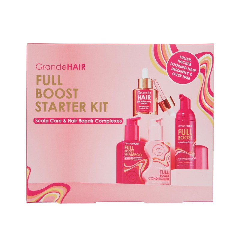 Grande Cosmetics GrandeHAIR Full Boost Starter Kit - Travel Size Shampoo, Conditioner, Volumizing Foam & Enhancing Serum - for Fuller & Thicker-Looking Hair