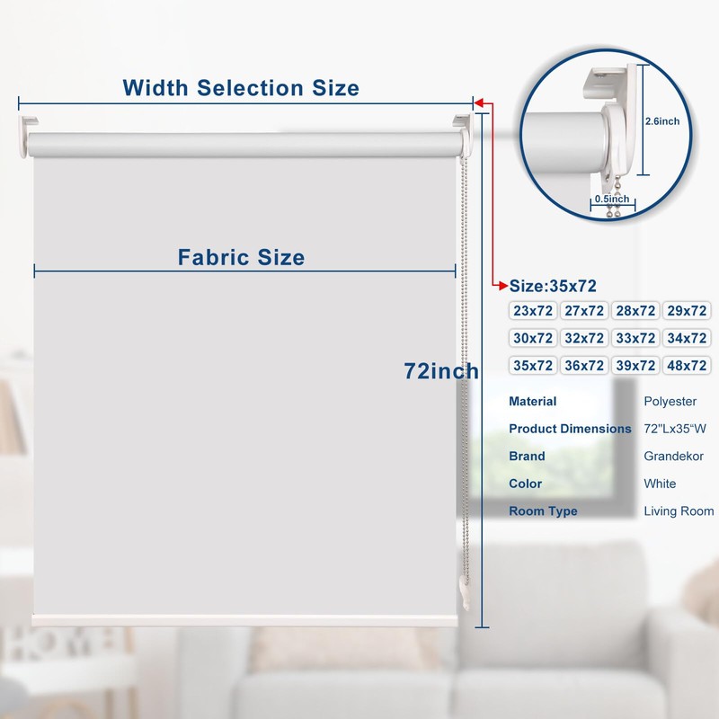 Grandekor 100% Blackout Roller Shades, Pull Down Shades for Window Thermal Insulated UV Protection Waterproof Blackout Fabric, Chain Corded roll up and Down Blinds,28x72,White