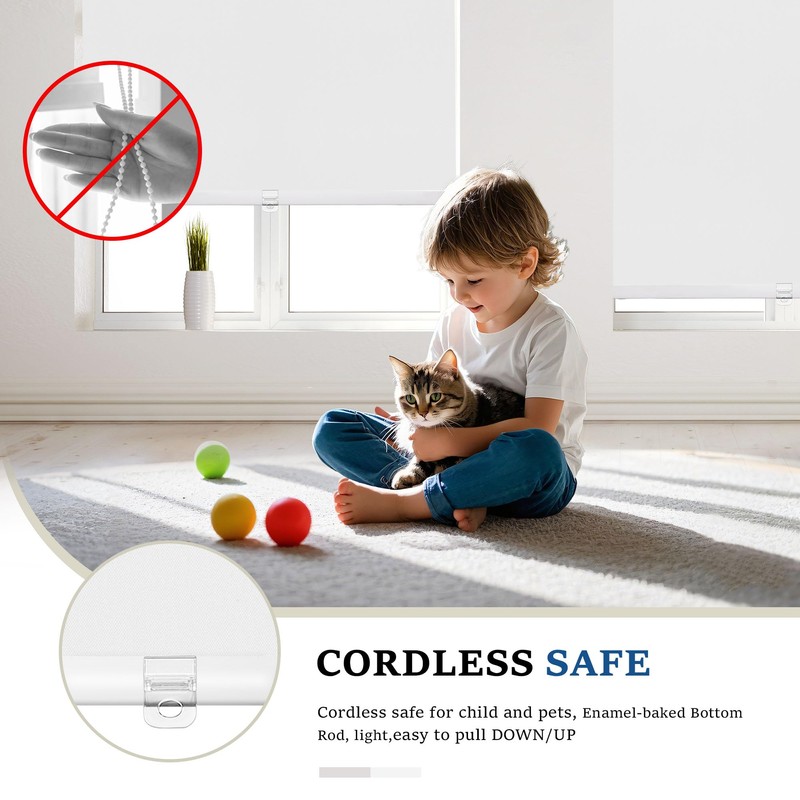 - 【Safe and Simple Cordless Design】Our cordless free-stop system offers a modern, safe look for homes with kids or pets. Adjust shades easily with a pull or push—no cords needed—for effortless light and privacy control.Ideal for bedrooms, living rooms, bathrooms, kitchens, French doors and offices.