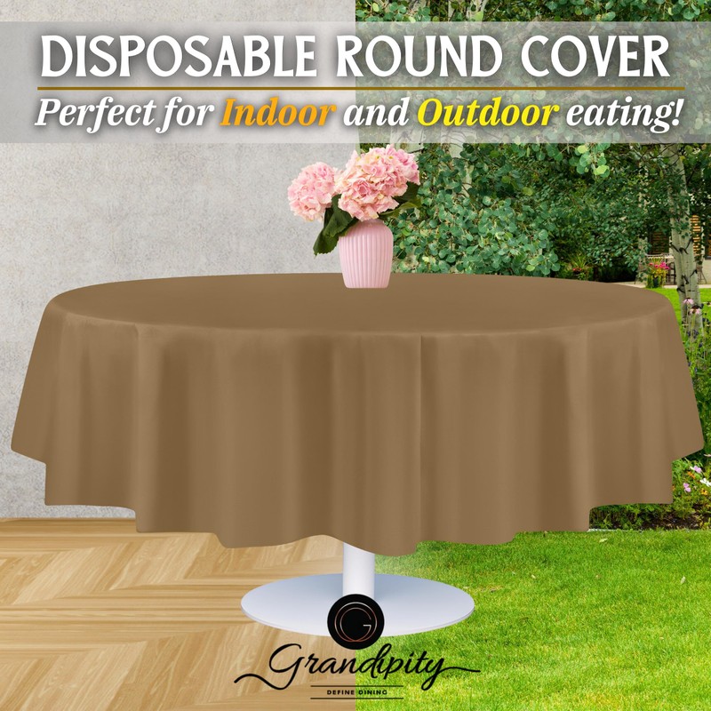 • 💎 Premium Material: Our Grandipity Premium Disposable Gold Plastic Tablecloth offers the perfect blend of luxury and convenience. Made from durable fade and tear-resistant plastic, this gold plastic table cloth round is designed to withstand spills and stains.