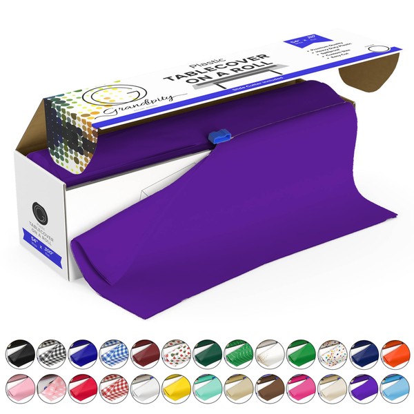 Grandipity Plastic Tablecloth Roll - 54" x300' Purple Plastic Table Cloths for Parties Disposable with Cutter Box - Cut to Size Disposable Tablecloth Plastic Table Cover for Rectangle & Round