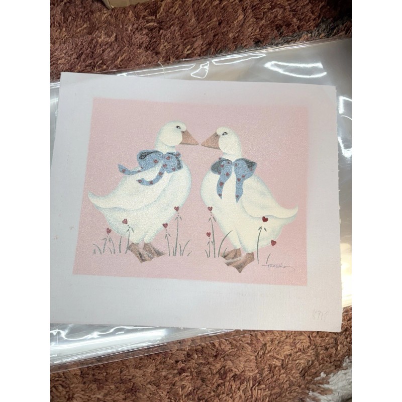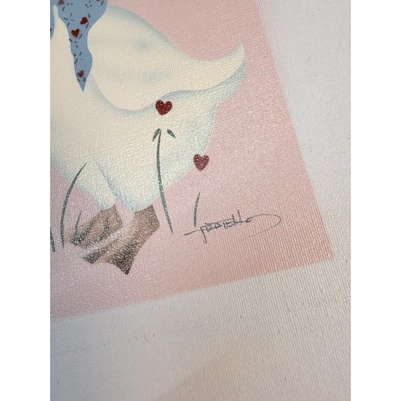 Grandma Core White Geese Hearts Pink Painting On Canvas 11.5x13.75 8x10