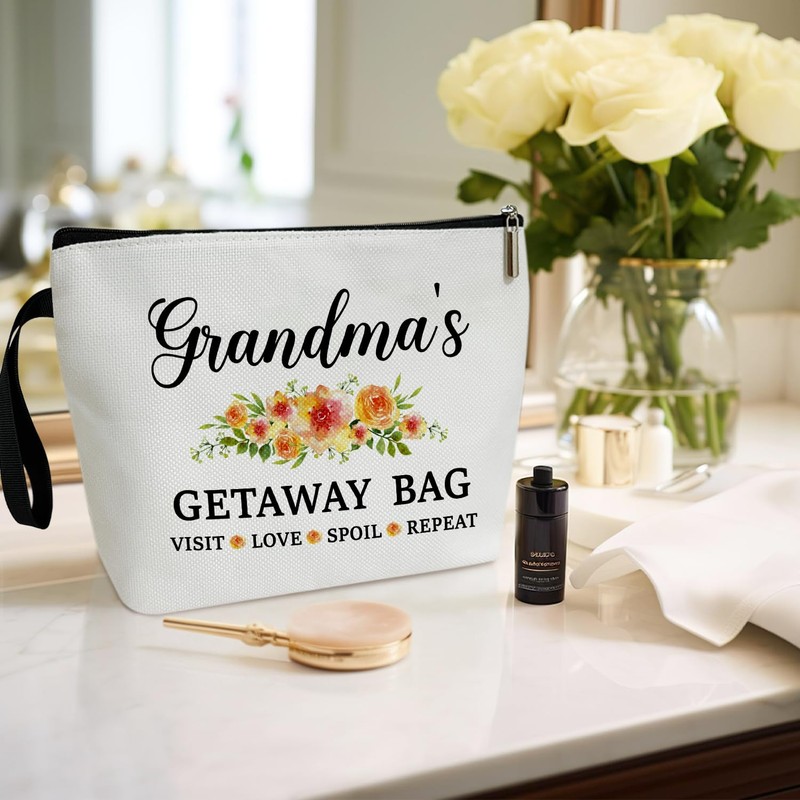 Grandma Gifts Grandma Bag, Floral Makeup Bag, Birthday Gifts for Grandma Nana, First Time Grandma Gifts, Mimi Bag Gifts For Mimi, Cosmetic Bag Zipper Travel Organizer Toiletry Pouch -050