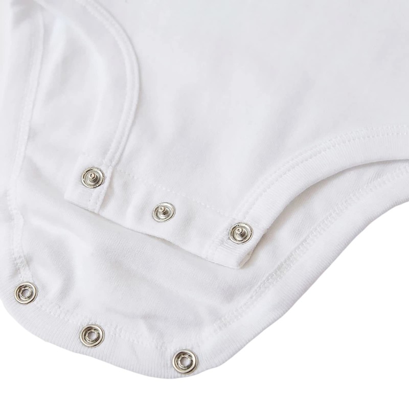 • We mentioned our baby boy girl bodysuit is 100% cotton for ultra comfort and softness. The durable interlocking fabric is also long-lasting and fully machine washable. It has three easy snap buttons at the bottom for ease of access for fast diaper changes. The convenient envelope folds at the shoulders of the one-piece make it easy to pull over your baby's head, avoiding getting any sort of mess that's on the onesie on their face or head.
