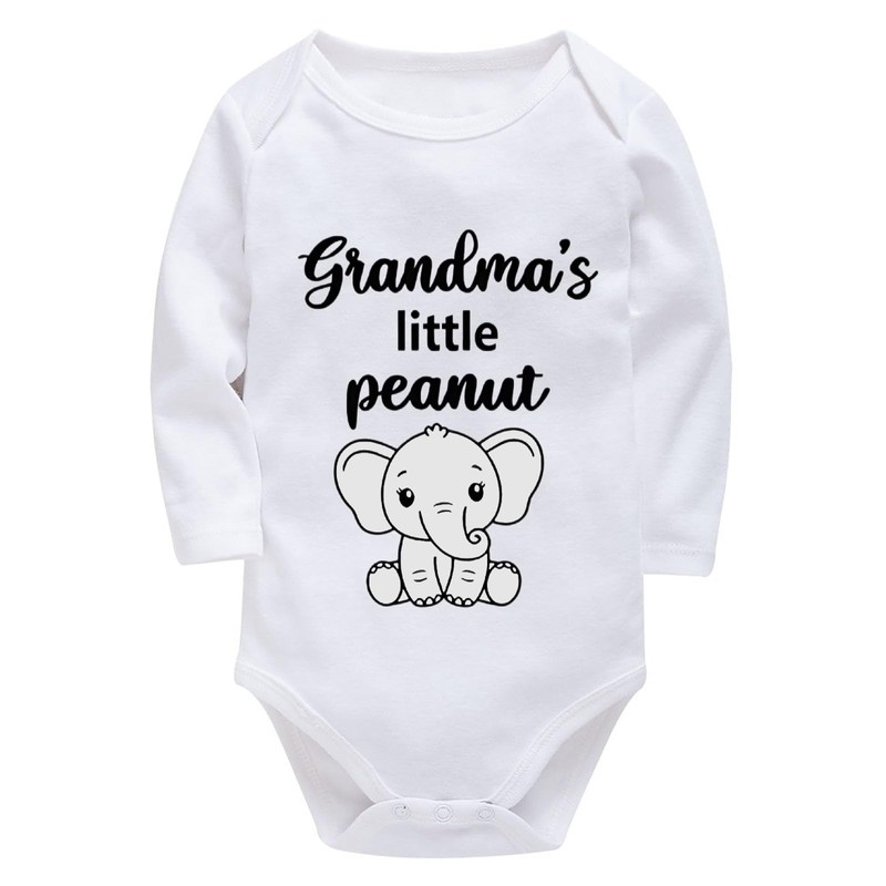 • Thanks to Grandma's Little Peanut baby romper allows for all-day wear or all night comfy underwear. The baby rompers we make are suitable for your little one to flaunt on any and all occasions. This can include casual, playtime, photo shoots, sports, special events, and more. If you're wanting an outfit for your little one that is neutral looking, not too boyish and not too girly, our unisex baby bodysuit is a good choice.