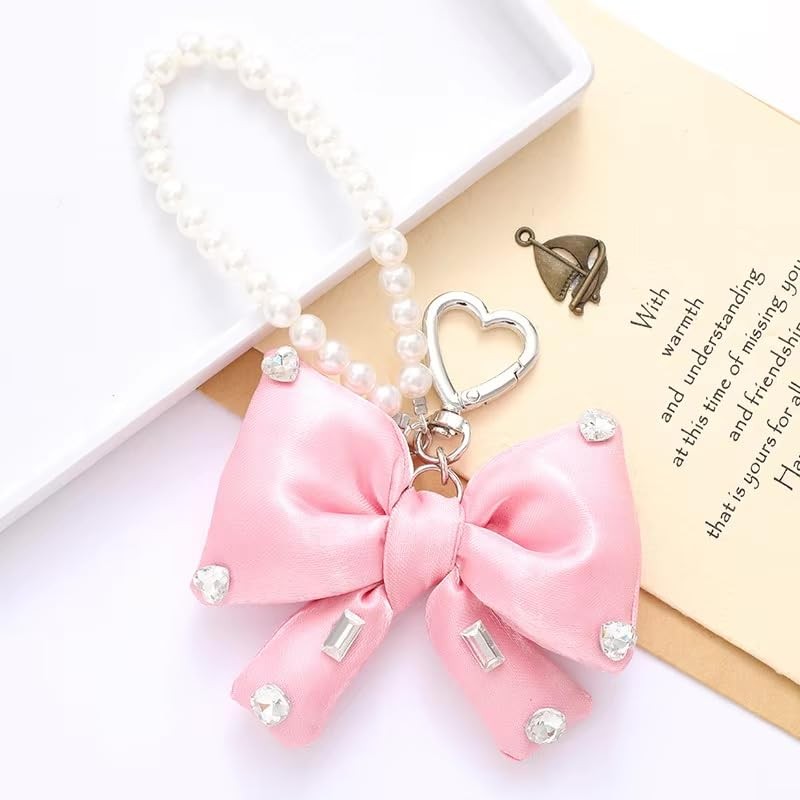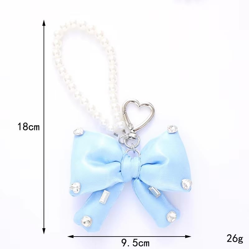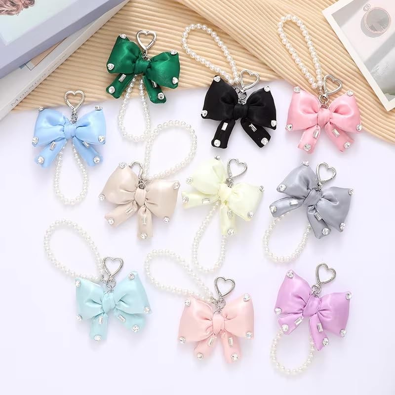 [GrandslamEX] リボン りぼん パール アクセサリー チャーム キーリング キーホルダー ストラップ キーチェーン スマホ ポーチ AirPods AirPods pro 財布 かわいい シンプル おしゃれ 飾り フック 小さめ カラフル 韓国 推し色 (ホワイト)