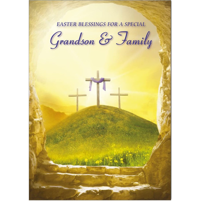 Grandson & Family Religious Easter Card - Christian Easter Card - A5 Size with Envelope