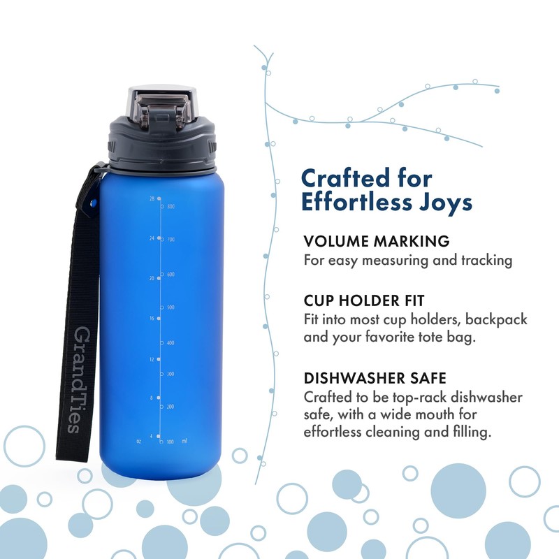Introducing the GrandTies Tritan water bottle, a perfect companion for kids, sports enthusiasts, and busy commuters. This water bottle is the perfect alternative to glass water bottles, thermos water bottle, insulated water bottle and metal water bottles. It combines durability, convenience, and style, making it an ideal choice for a range of activities, from sports to school. Whether you’re hitting the gym, on a hike, or enduring a long commute, this slim water bottle is a must-have. The GrandTies Tritan water bottle is BPA-free, ensuring that it's safe for you and your family. It's also dishwasher safe for easy cleaning. A handy handle strap makes it easy to carry around, while the removable straw allows for comfortable drinking. Ideal for indoor, sports or commute, it easily fits into your backpack or gym bag. The large capacity ensures you're well-hydrated throughout the day, best for workout. Its clean and clear design allows you to track your hydration level easily, perfect alternative to motivational water bottle. It's also perfect as a kids water bottle for school. The water bottle with measurements helps you monitor your daily water intake, a perfect gift for girls and boys. Whether you're looking for a 24 oz, 32 oz water bottles with straw, 40 oz water bottle, or a glass water bottle, the GrandTies Tritan water bottle is a great choice. It’s more than just a water bottle, it’s a lifestyle choice for those who prioritize health and convenience. So, ditch the single-use lightweight plastic water bottles and switch to the GrandTies Tritan water bottle. Stay hydrated and stylish with GrandTies!