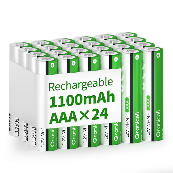 Granicell AAA Rechargeable Batteries 1100 mAh High Capacity 1300 Cycle,1.2V NiMH Low Self Discharge Triple AAA Battery,24 Pack