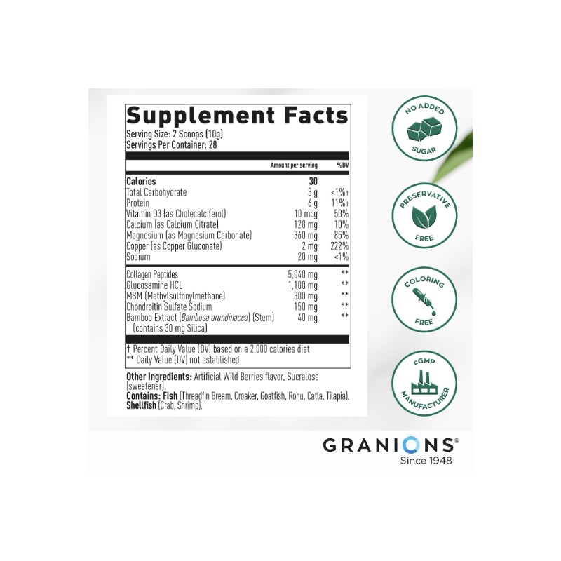 EXPERT JOINT & BONE SUPPORT. Scientifically formulated marine collagen peptides, glucosamine sulfate, chondroitin, MSM, vitamin & mineral supplement. Supports flexibility, mobility & bone strength.