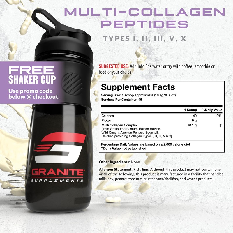 Granite® Multi-Collagen Peptides (45 Servings) 10g Collagen Types I, II, III, V, X | Clean Taste, Sustainably Sourced, Grass-Fed Pastured Beef, Wild Caught Alaskan Pollack | Gluten Free, Soy Free