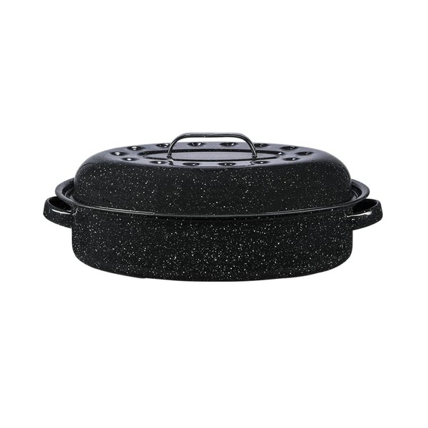 Granite Ware 15-Inch Covered Oval Roaster, 10 Lb Capacity - Enamel Steel Cookware, Dishwasher Safe & PFOA-Free, Even Heat Distribution for Roasting Poultry, Meat, or Vegetables (Speckled Black)