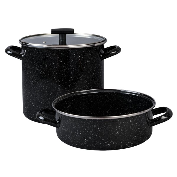 Granite Ware 3-Piece Cookware Set, 8 Qt Stock Pot & 3 Qt Casserole w/Glass Lid, Speckled Black