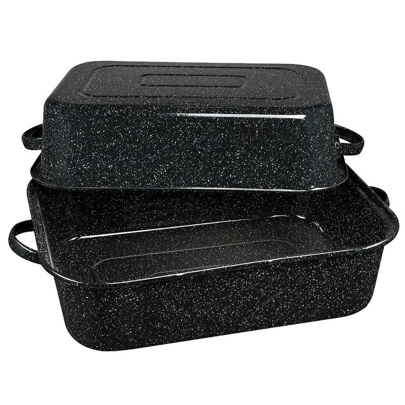 Granite Ware 21-Inch Covered Rectangular Roaster - Enamel Steel Cookware, Nonstick & Chemical-Free, Dishwasher Safe - 25 Lb Capacity, Large Roasting Pan for Meats, Poultry, Vegetables (Speckled Black)