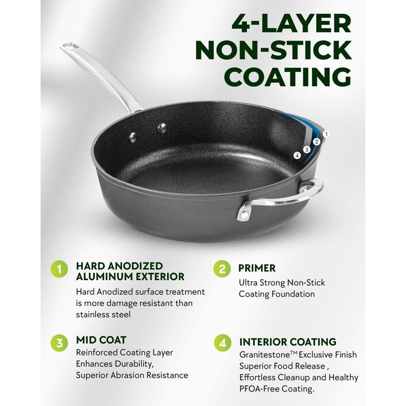 - Built to last years: granitestone armor max is constructed from forged, heavy duty, hard anodized aluminum stronger than stainless steel designed to last 10,000 dishwasher cycles, ensuring your nonstick cookware lasts for years on end