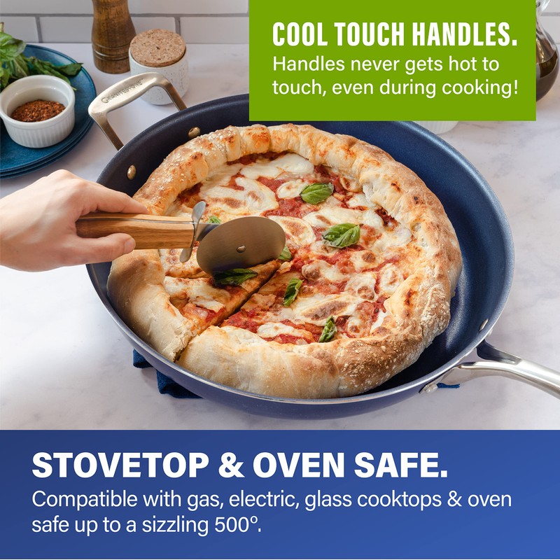 Granitestone Blue Nonstick 14” Frying Pan with Lid with Ultra Durable Mineral and Diamond Triple Coated Surface, Family Sized Open Skillet, Oven and Dishwasher Safe, 100% PFOA Free