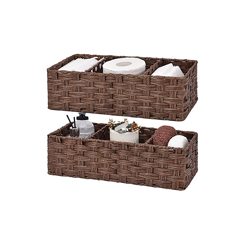 GRANNY SAYS Bathroom Baskets for Organizing, Toilet Storage Basket, Wicker Tank Basket with 2 Dividers, Brown, 2-Pack