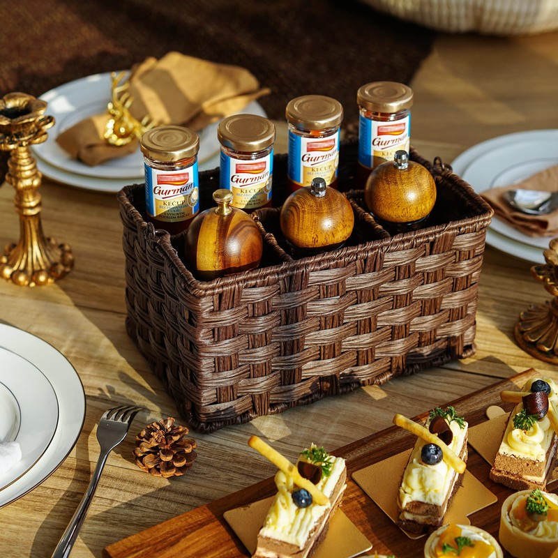 - 4 Compartments - The utensil holder basket features a practical design with 3 small compartments and 1 large compartment. You can store spoons, forks, and knives in the three smaller compartments and store napkins or other condiments in the larger one for better organisation.