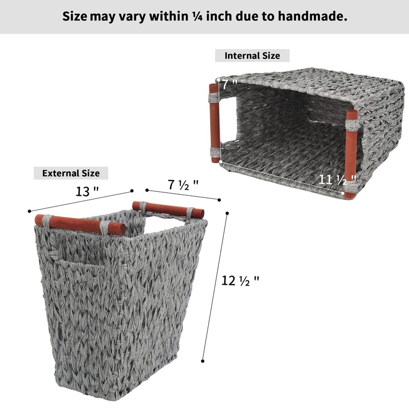 - One set of 1-pack wicker wastebasket with wooden handles, dimensions: 13" x 7 ½" x 12 ½" (L x W x H).