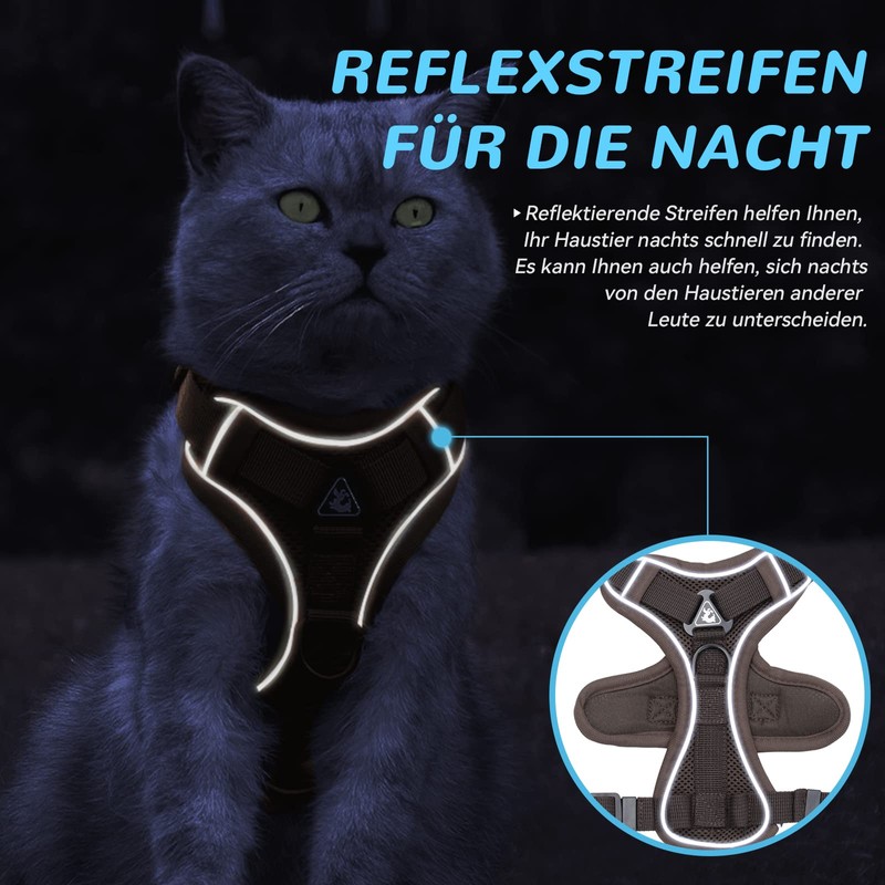 - Ambient reflective band design: The anti-escape design can be adjusted to display a reflective band on the edge. The 360-degree reflective band design makes the cat stand out better in low light conditions, ensuring safety at night.