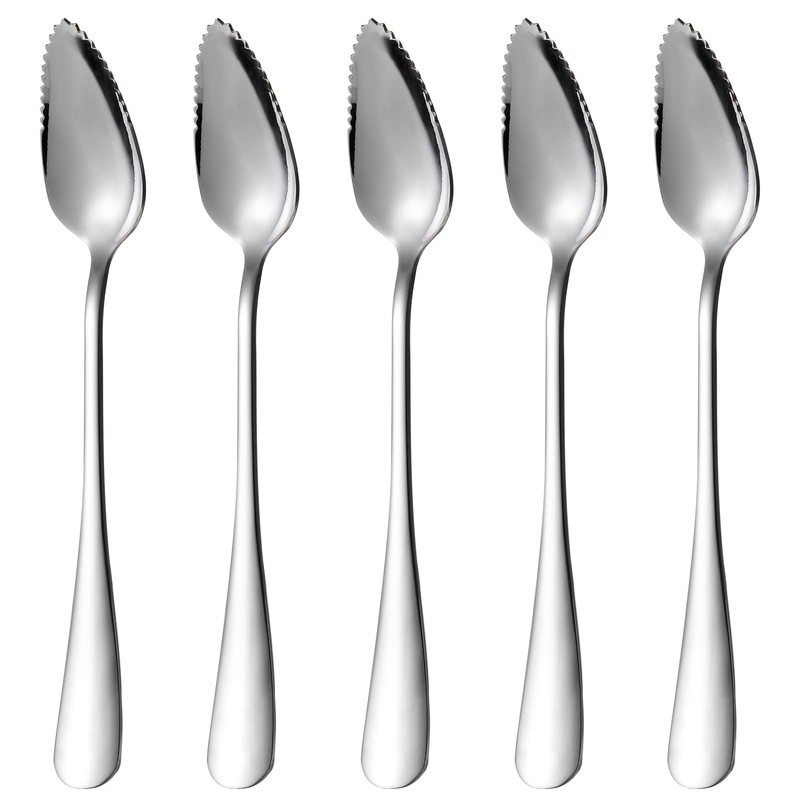 Grapefruit Spoons 5 Pieces Set, Stainless Steel Grapefruit Utensils Tools with Titanium Platin, Serrated Edges Spoon for Fruit Apple Kiwi Citrus, Silver