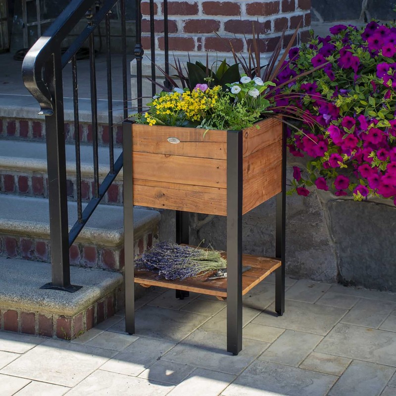 Grapevine PL10003 Urban Garden Tall FSC Recycled Wood and Metal Planter with Shelf
