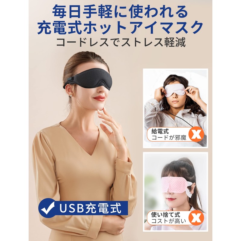 - (Convenient to Carry and Useful in Various Occasions) This eye mask can be used for 135 minutes on a full charge, making it convenient to carry. Even when you are unfamiliar with travel, business trips, bullet train or night bus, you can obstruct your vision and create an easy sleep environment for a variety of occasions. For insomnia sufferers, we can offer you a good night's sleep